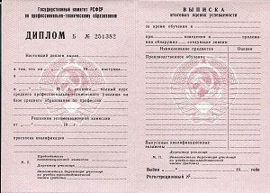 - Документ: Диплом ПТУ 1993 года (РСФСР)