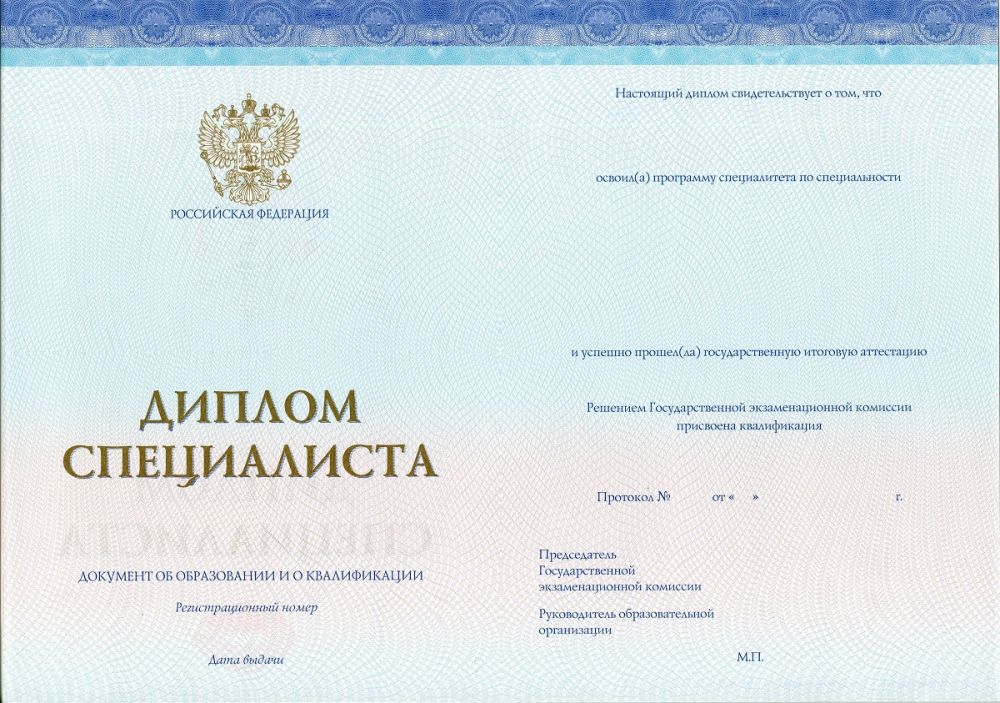 - Документ: Диплом специалиста с 2014 по 2024 год СПЕЦБЛАНК